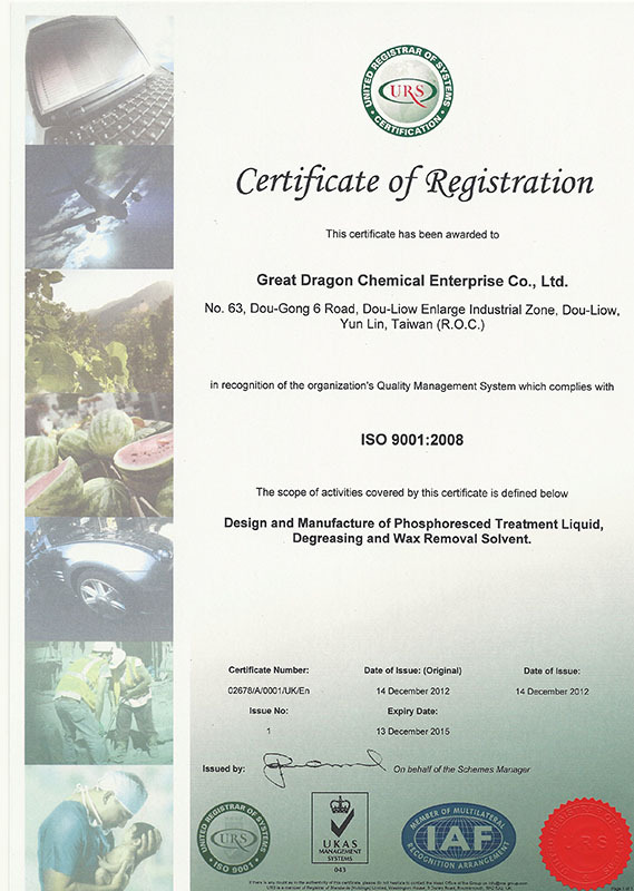 磷化皮膜處理劑適用於鋼鐵、鋁、錳、鋅以及鈦合金等金屬基材。使用純度99.995鋅錠,藥劑中鋅含量高,化成後形成多孔性皮膜,可與底材緊密結合增加附著力,塗裝後鹽霧測試性能優越。使用食品級85%磷酸,無雜質、無有害重金屬成分,藥劑穩定。添加補給藥劑操作管理容易,節省各項成本支出。